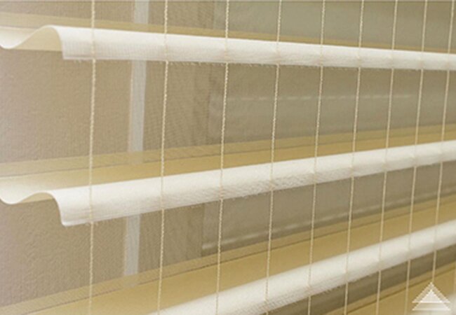 As lâminas são confeccionadas com dois tipos de tecidos, opaco e translúcido que com a movimentação é possível controlar a luminosidade.