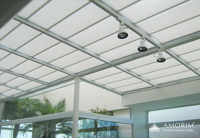 A Persiana Romana para Teto Amorim é uma solução para o aproveitamento de áreas externas cobertas por vidros ou similares.